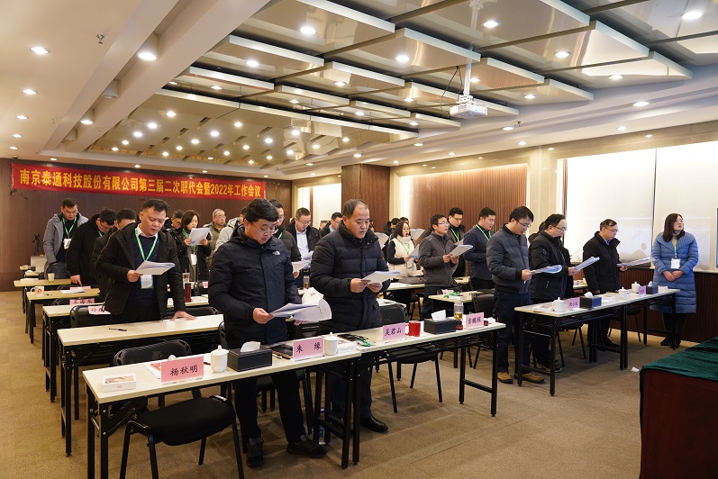 2022年1月27-28日,泰通科技第三屆二次職代會暨2022年工作會議在南京召開,會期兩天,會議主題為“握指成拳行穩(wěn)致遠 凝聚初心砥礪前行”。