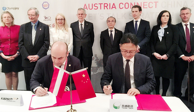4月8日下午,在北京四季酒店舉行了中奧企業(yè)合作簽約儀式。出席簽約儀式的政要代表有奧地利總統(tǒng)亞歷山大·范德貝倫,總理塞巴斯蒂安·庫爾茨,外交部長,環(huán)境部長,經(jīng)濟部長,基礎(chǔ)設(shè)施部長,聯(lián)邦商會主席,奧地利駐中國大使及中國駐奧地利大使李曉駟,簽約項目總價值15億歐元,涉及基礎(chǔ)設(shè)施、金融合作、文化藝術(shù)、教育等多個方面。