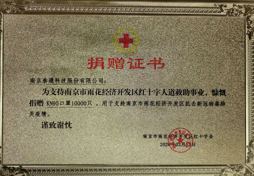 2月24日上午,春回大地,龍神驅(qū)“疫”,在雨花經(jīng)濟(jì)開發(fā)區(qū)管委會(huì),泰通科技董事長(zhǎng)、總裁吉榮新代表公司將價(jià)值30萬(wàn)元的KN95口罩捐贈(zèng)給南京市雨花經(jīng)濟(jì)開發(fā)區(qū)紅十字會(huì),用于馳援抗擊新冠肺炎疫情。