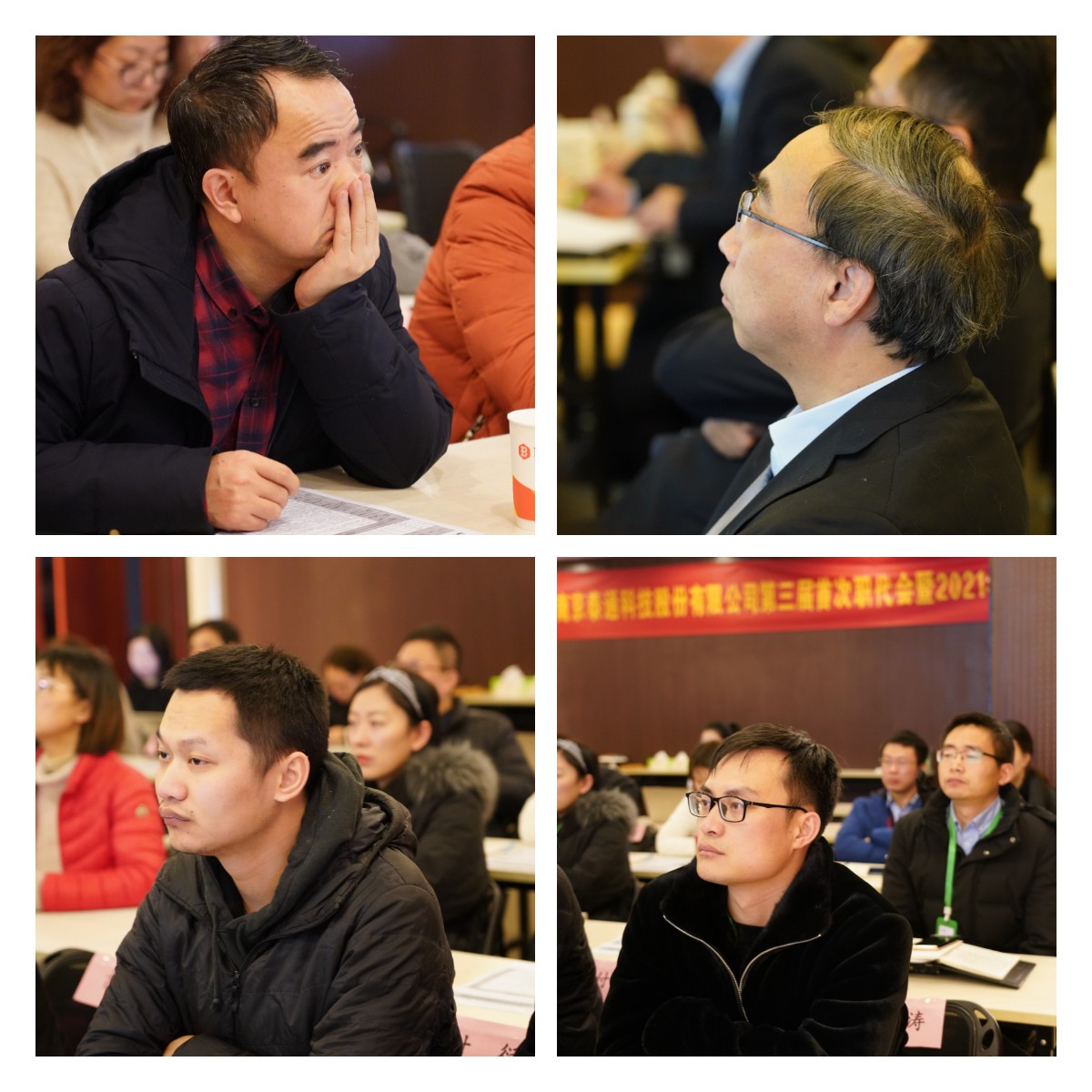 董事長吉榮新做了關(guān)于《重基礎(chǔ) 強(qiáng)管理 抓落實(shí),把握‘新基建’契機(jī)實(shí)現(xiàn)科創(chuàng)板上市》的年度報(bào)告,回顧了2020年泰通科技年度銷售任務(wù)完成情況,總結(jié)了新產(chǎn)品突破、工程項(xiàng)目開通、智能制造水平和公司管理等方面取得的成績,分析了2020年度遇到的困難和亟待解決的問題。