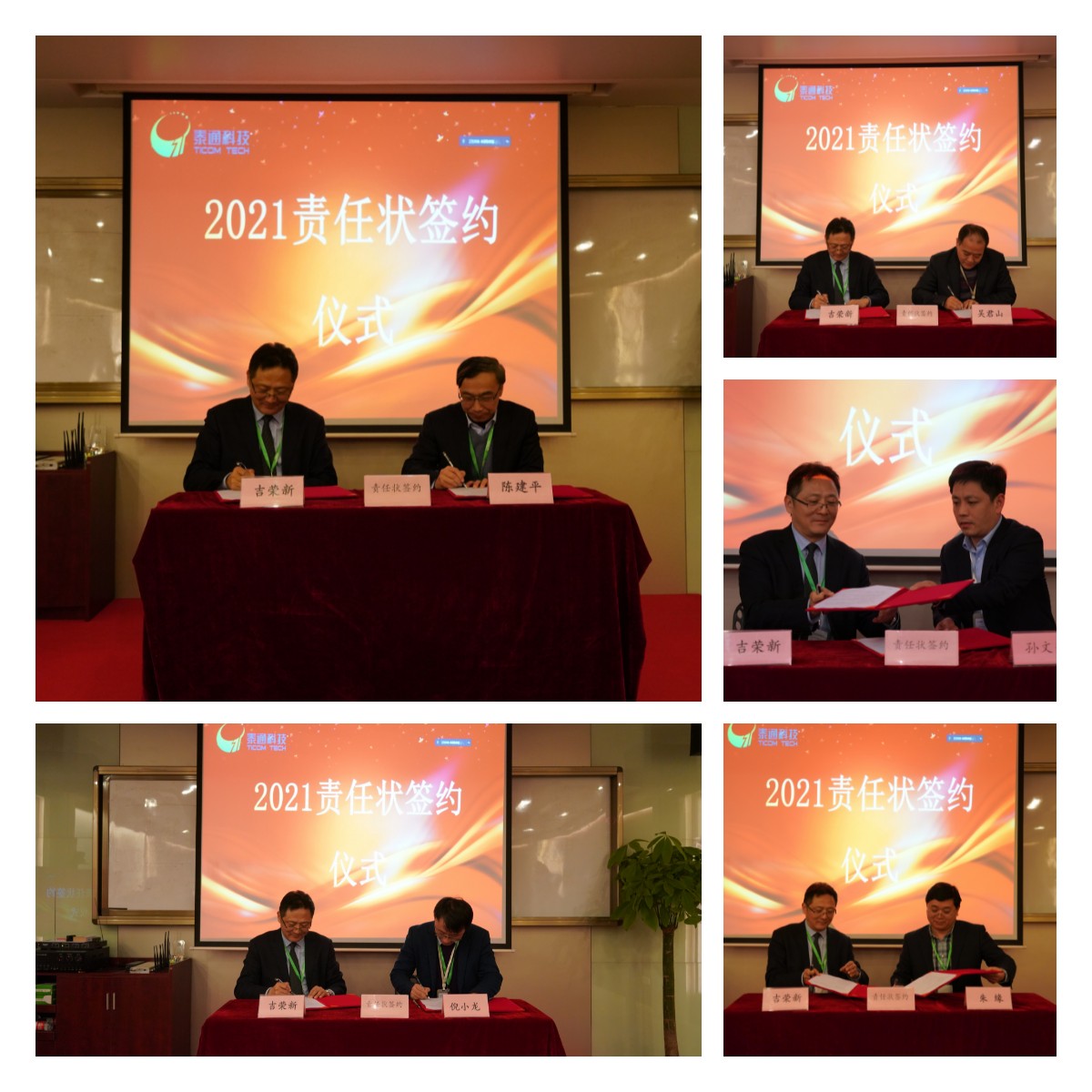 董事長分別與公司高管及分公司總經(jīng)理簽訂了2021年度責(zé)任狀。